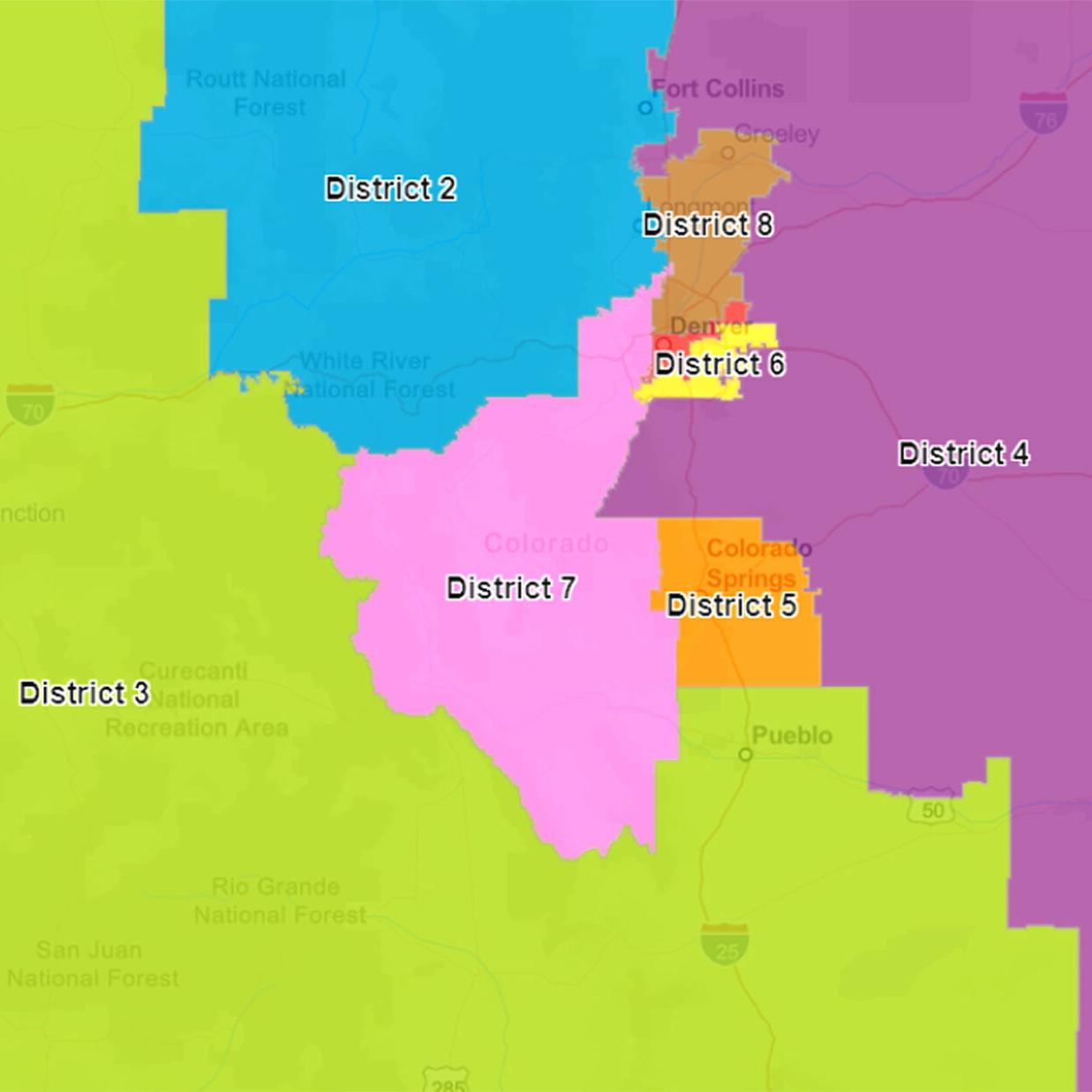 1 the state Supreme Court approved the Colorado independent redistricting commissions proposed congressional map over the objections of Democrats and Hispanic advocacy groups. Rural Colorado United a super PAC that opposes Boebert tried to mobilize support for an amended citizen-drawn map that created a huge 3rd District spanning Colorados borders from east to west. Colorado US Congressional Districts Map.
